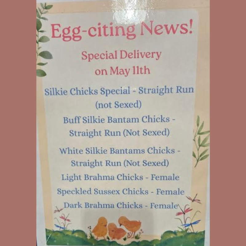Dates shown reflect ship dates, with chicks available the following day. We recommend calling ahead to confirm arrival.